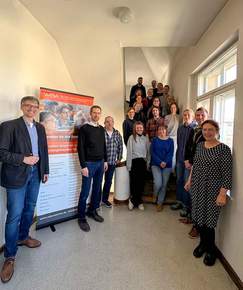 Am 28.03.2025 ist das erste berufsbegleitende Zertifikatsstudium zum Lehmbau an der Weiterbildungsakademie der Bauhaus Universität (WBA) unter Leitung von Prof. Dr.- Ing. Christof Ziegert gestartet. Das kann ohne Übertreibung als historisch bezeichnet werden. Der Dachverband Lehm hat die Teilnehmenden mit begrüßt und freut sich über das große Interesse an diesem Angebot. Der Kurs war schon in kurzer Zeit ausgebucht. Daher steht der Termin für den nächsten Kurs im Frühjahr 2026 auch schon fest.