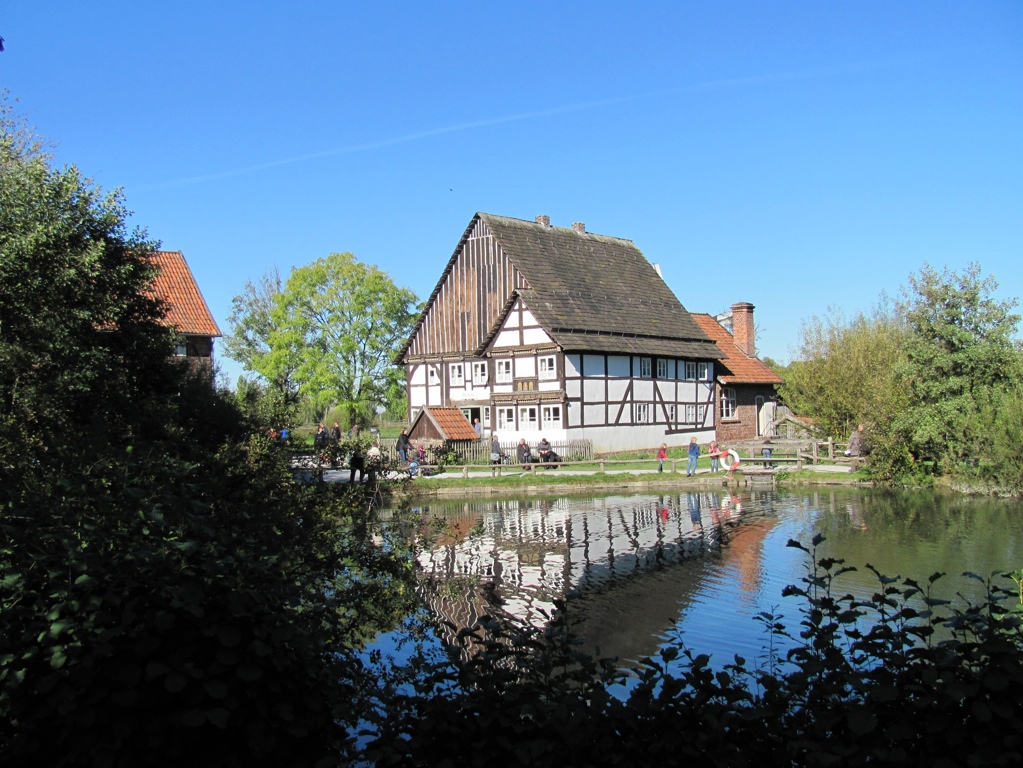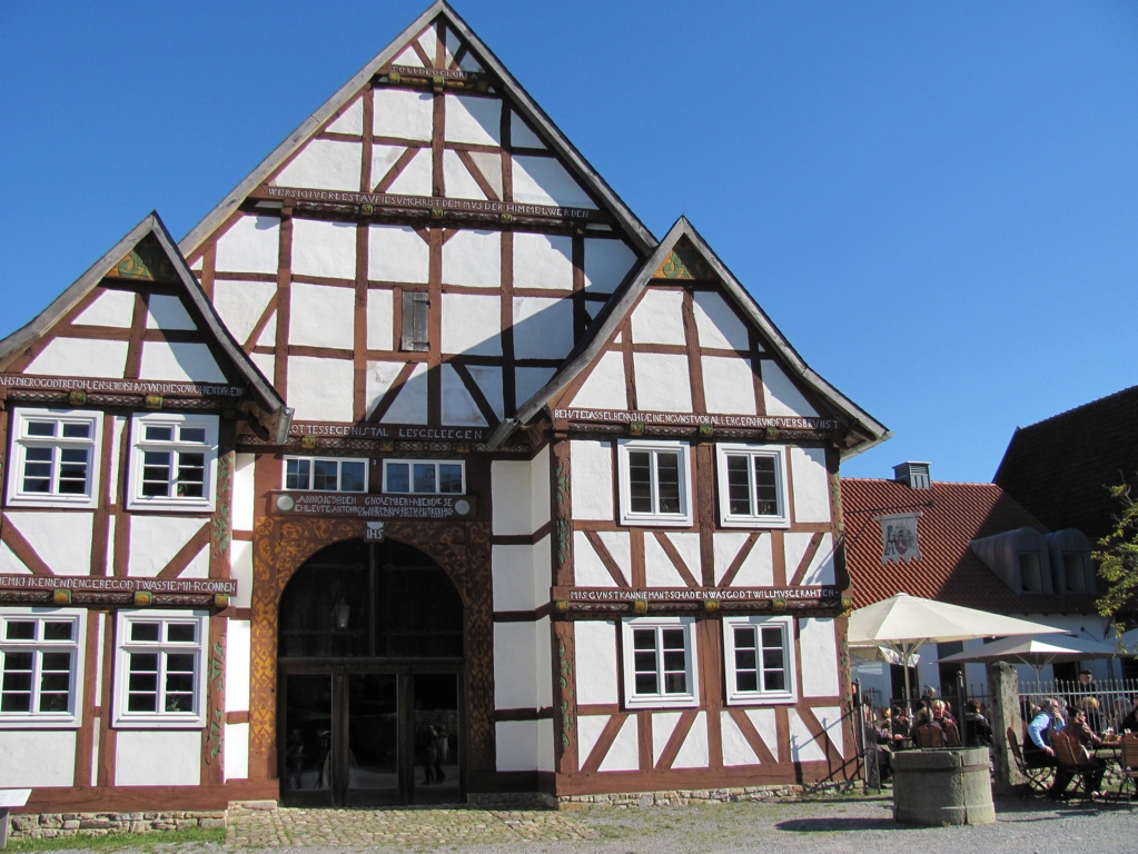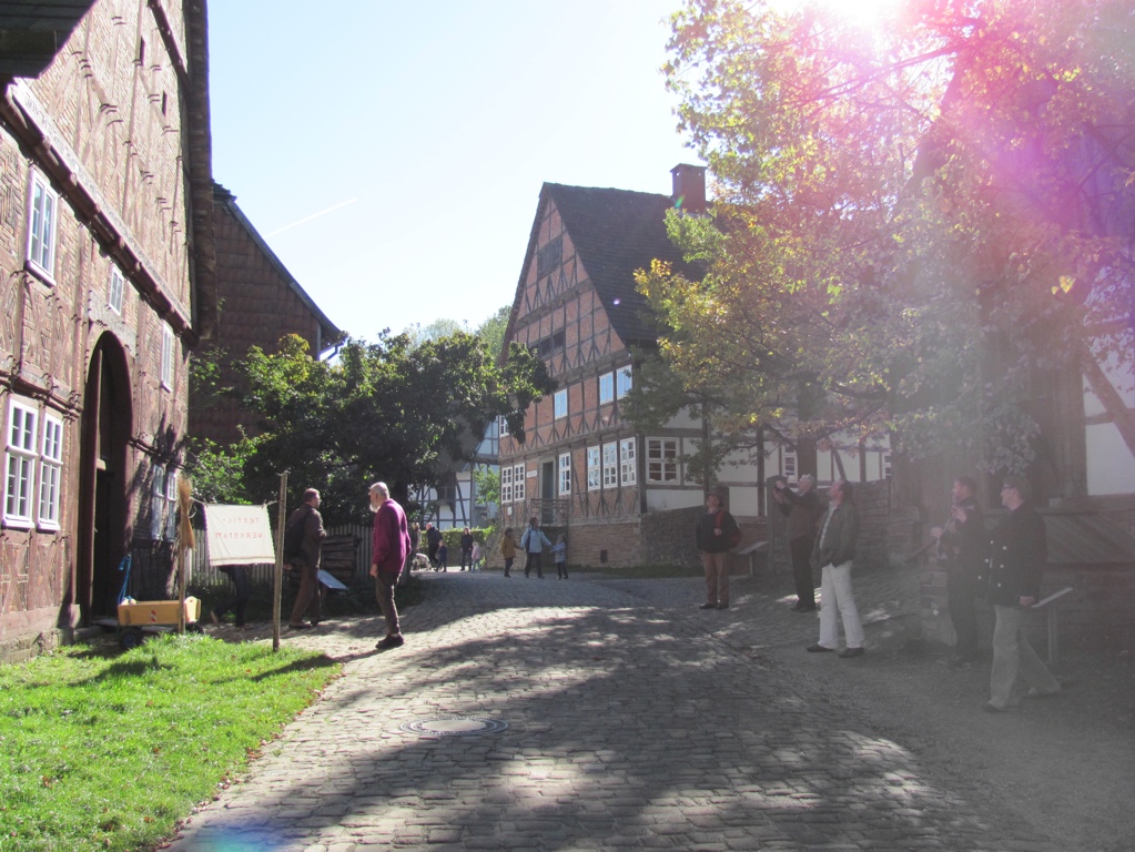 Den imposanten Abschluss bildete das Freilichtmuseum Detmold, Deutschlands größtes Freilichtmuseum mit 90 Hektar, über 100 Gebäuden, Gärten, Feldern, Lippegänsen und Bentheimer Landschweinen. Nach der Stärkung im Gasthof „Weißes Ross“ beschloss eine umfangreiche Führung durch den Bauforscher Dr. Hubertus Michels den sonnigen Exkursionstag.